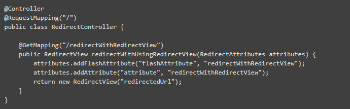 在背后,RedirectView 会触发 HttpServletResponse.sendRedirect() - 这将执行实际的重定向。
