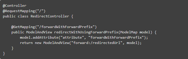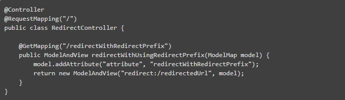 如果需要重定向到一个绝对URL,我们可以使用像这样的名称:redirect: http://localhost:8080/spring-redirect/redirectedUrl。