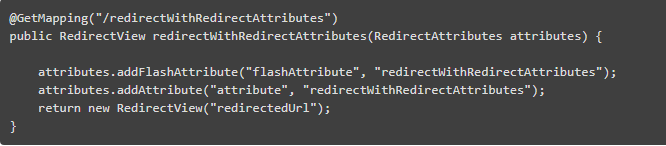 接下来 - 让我们看看在一个重定向中传递属性 - 充分利用框架中的RedirectAttribures: