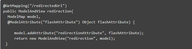 还要注意,我们也添加一个Flash属性 - 这是一个不会被添加到URL中的属性。我们可以通过这种属性来实现——我们稍后可以在重定向的最终目标的方法中使用@ModelAttribute(“flashAttribute”)来访问flash属性: