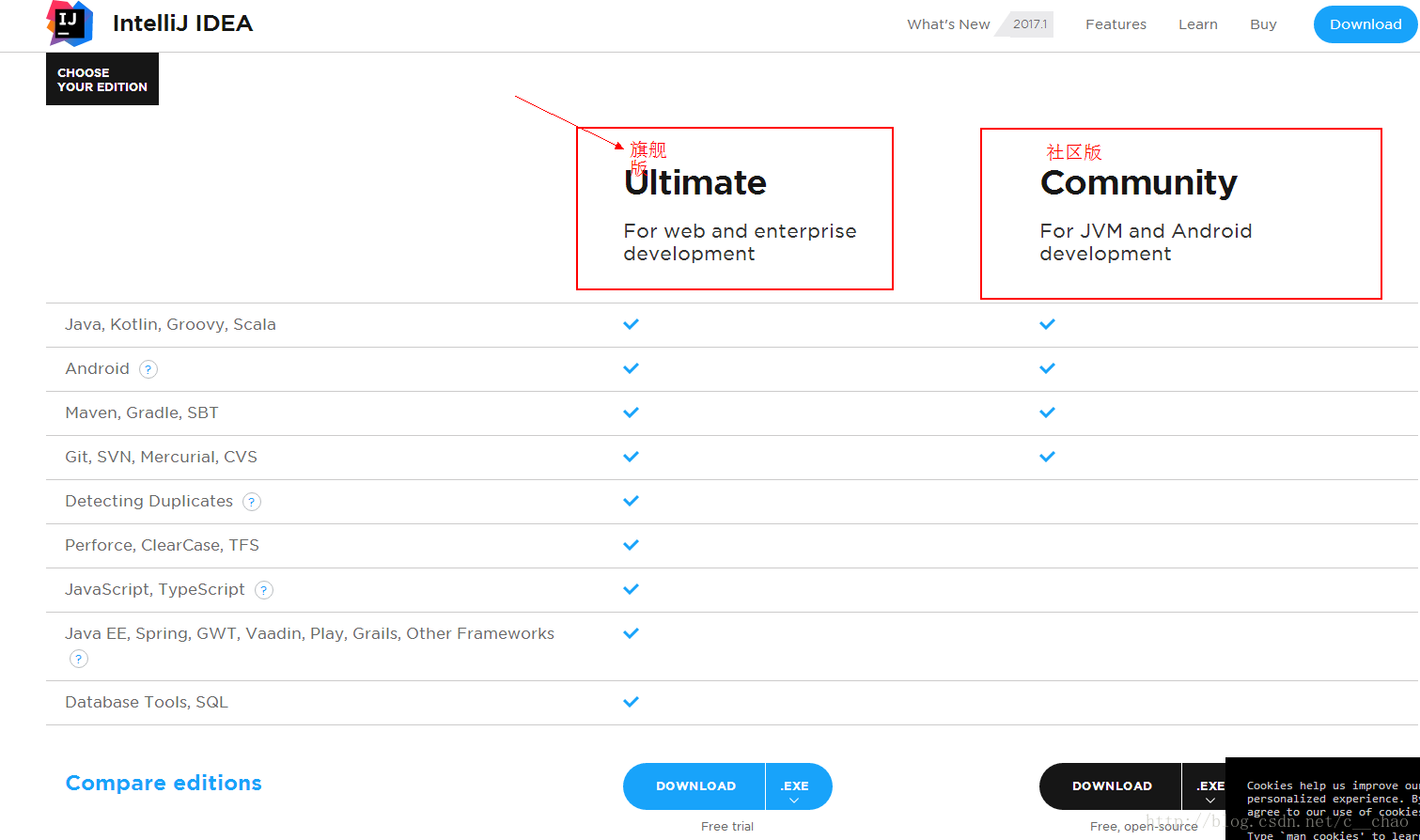 IntelliJ IDEA是来自捷克的Jetbrains公司开发的Java开发工具(完爆Eclipse/MyEclipse)。有旗舰版和社区版两大版本,相对社区版而言旗舰版的功能更加丰富。官网提供了两个版本之间差异的详细比较。擅长企业级应用、移动应用以及Web应用开发。