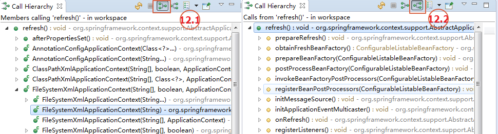 | 12.1~12.2 | open call hierarchy | ctrl+alt+h | 查看方法被调用层次, 可以看当前方法被调用的地方12.1,或者当前方法调用了其他类的方法12.2 |