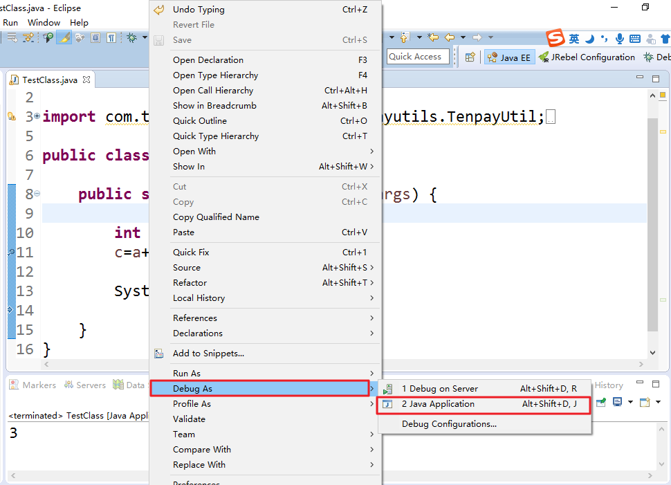 在所有调试中,调试一个Java程序是最简单的,主要有设置断点、启动调试、单步执行、结束调试几步。
