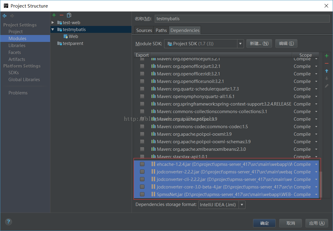 1.首先在dependencies里加入本地jar包。如图1.1所示