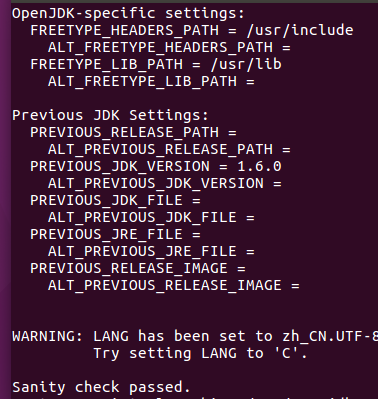 6现在我们到/usr/openjdk目录去执行make sanity命令,检查是否配置都没问题了。如果没有问题就会显示