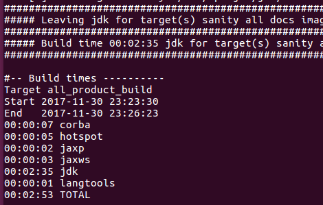 7万事具备,只欠东风,输入make,开始编译,编译出的东西会生成在/usr/openjdk/build目录。