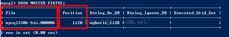 执行SQL语句查询状态:SHOW MASTER STATUS