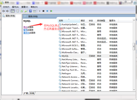 要想使配置生效,必须关掉MySQL服务,再重新启动。