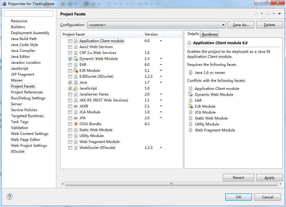 8、将项目转换成Dynamic Web Project,在项目上右键Properties,在左侧选择 Project Facets。