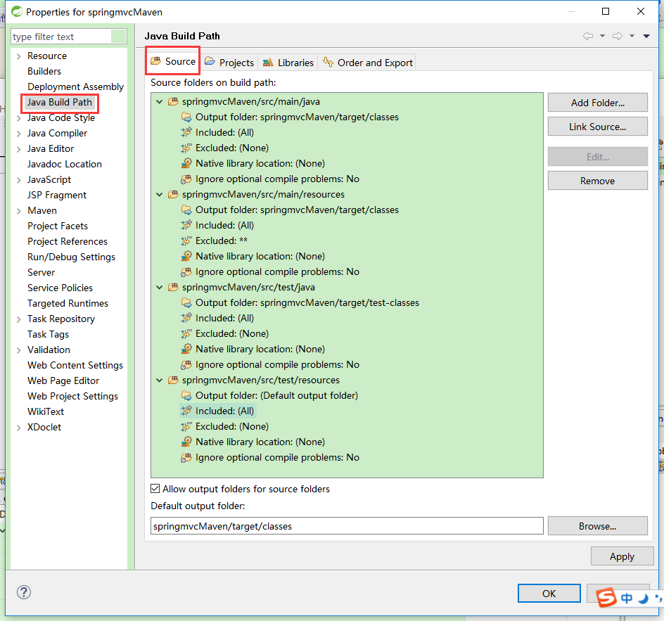 src/test/java ,src/test/resources, 选择target/test-classes;