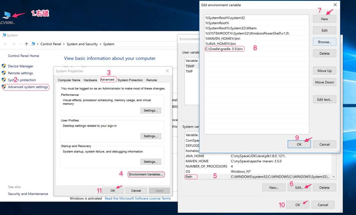 下载以后,解压到C:\Gradle 目录下,接着,需要配置环境变量,整个配置过程入下: