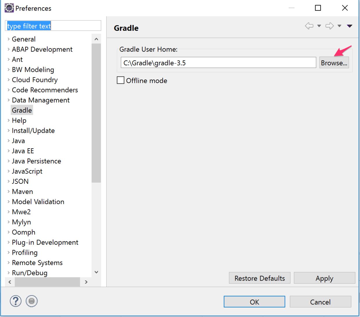 然后,需要把 gradle 的路径配置到 Eclipse 中,如下所示,