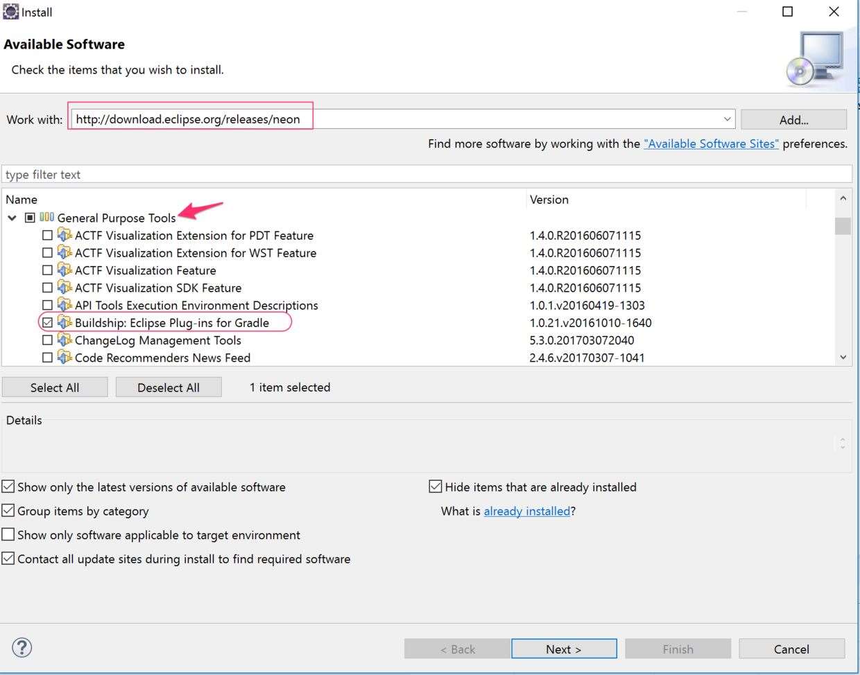 最后,安装 Gradle 与 Eclipse 集成的插件,Eclipse把 Gradle 的插件称之为Buildship。 可以在Github上获得Buildship的源代码。