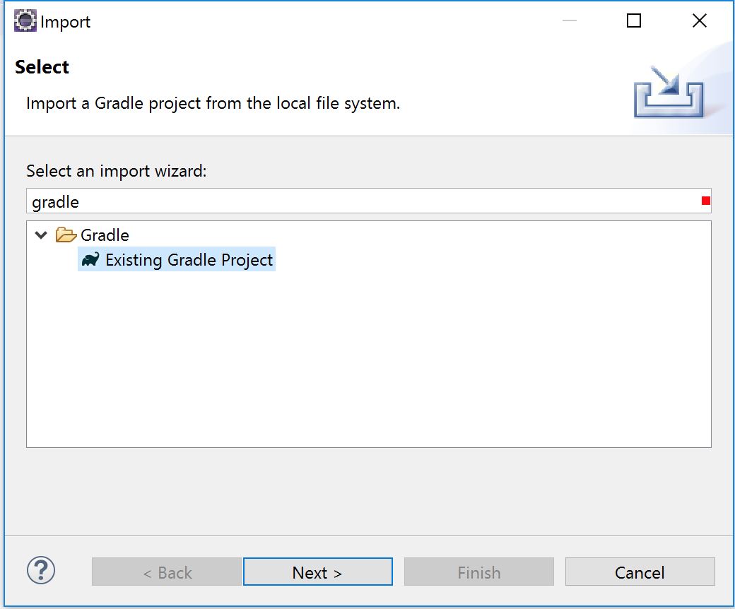 你还可以将现有的Gradle项目导入Eclipse。 选择FileImport...GradleGradle Project菜单项。