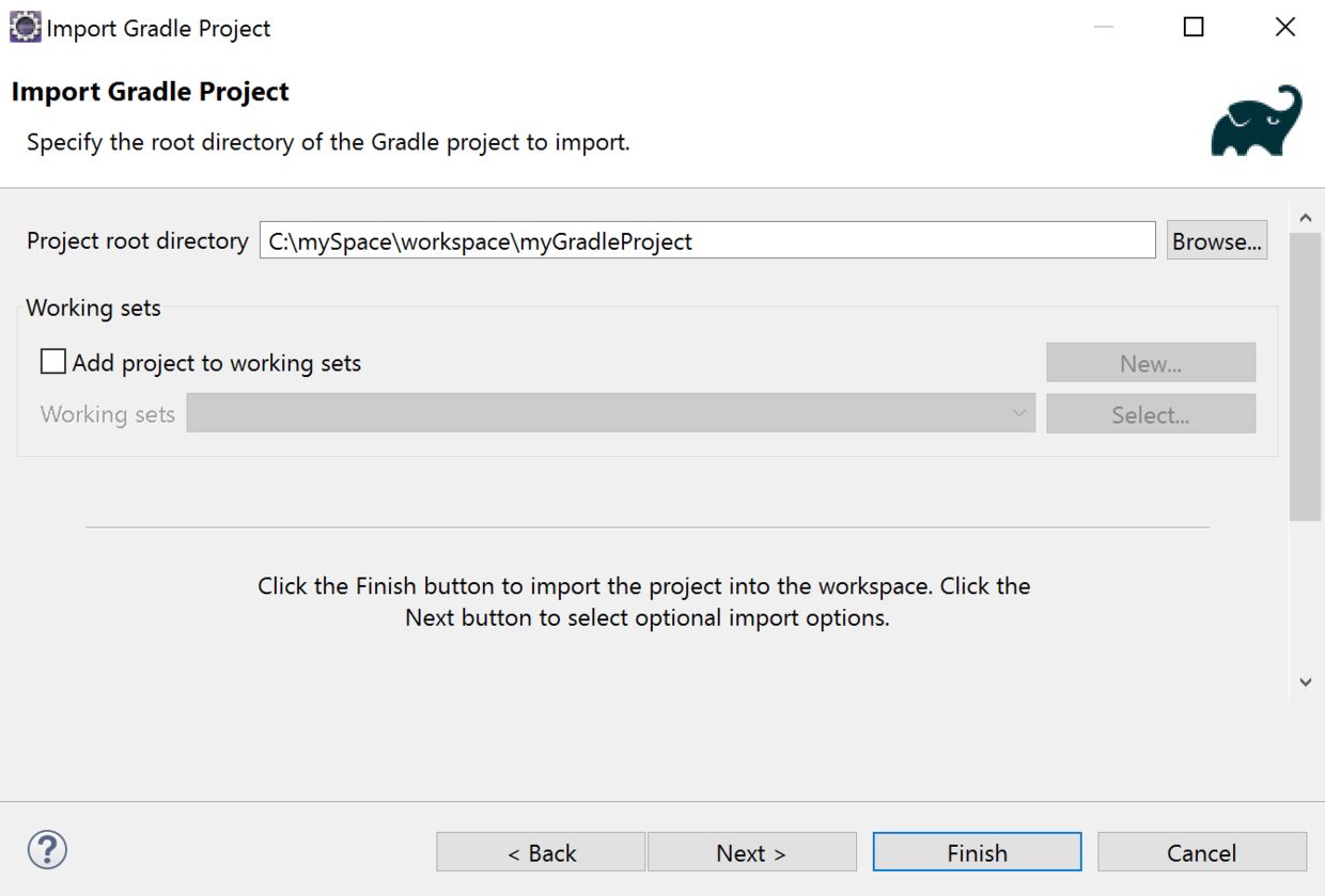 点击Next>按钮后,需要指定Gradle项目的根目录。