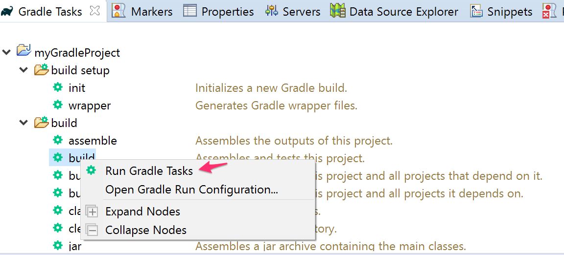 Gradle Inc.是Gradle框架开发的公司,为Eclipse IDE提供了Gradle工具的支持。 此工具可以创建和允许Gradle项目导入到Eclipse IDE中。 它还允许运行Gradle任务并监视它的执行。