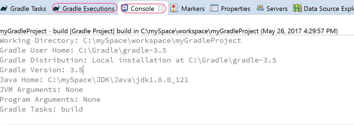 你可以在Gradle Executions 视图和 Console 视图查看运行结果。