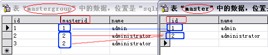 id字段(人员映射表中是masterid字段)关联表现在数据库中的形式如下图: