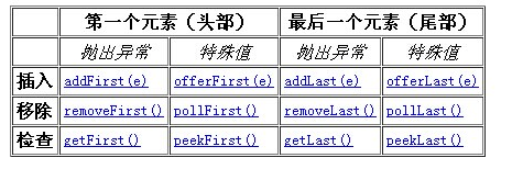 此接口定义在双端队列两端访问元素的方法。提供插入、移除和检查元素的方法。因为此接口继承了队列接口Queue,所以其每种方法也存在两种形式:一种形式在操作失败时抛出异常,另一种形式返回一个特殊值(null 或 false,具体取决于操作)。