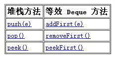 b、用作 LIFO(后进先出)堆栈。应优先使用此接口而不是遗留 Stack 类。在将双端队列用作堆栈时,元素被推入双端队列的开头并从双端队列开头弹出。堆栈方法完全等效于 Deque 方法,如下表所示: