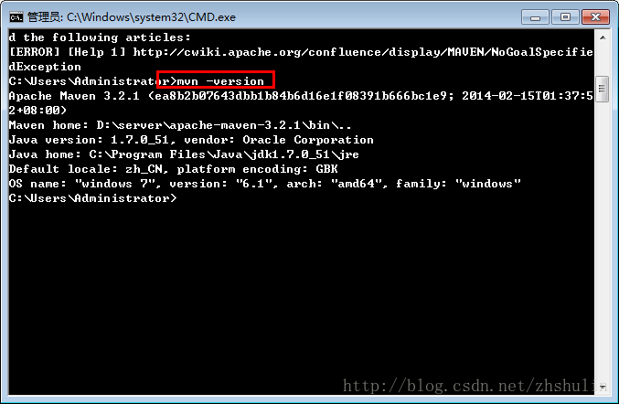 完成之后,在命令行输入:mvn -version查看是否有以下内容,如果有表示配置成功。