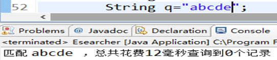 在构造QueryParser时,通过对词项q的修改可以实现精确匹配和模糊匹配。模糊匹配通过在“q”之后加“~”进行修改。如图5-2所示: