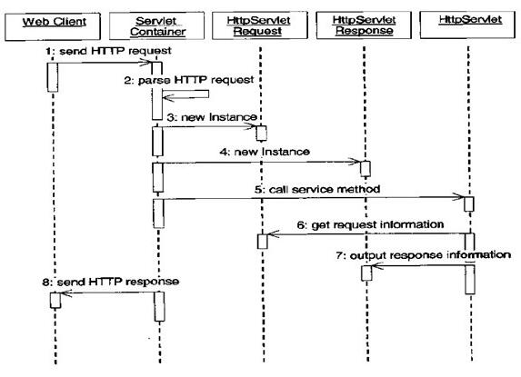 3.Servlet容器为此产生一个实例对象并调用ServletAPI中相应的方法来对客户端HTTP请求进行处理,然后将处理的响应结果返回给WEB服务器.