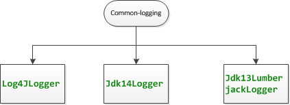 * slf4j-api --> slf4j-jcl --> common-logging-api (自动向log4j)--> log4j