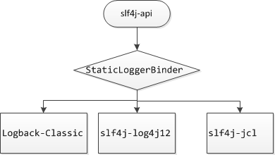 slf4j作为接口定义,下面有很多种实现。实现原理是获取ILoggerFactory时执行初始化,初始化过程绑定实现对象:load出所有实现StaticLoggerBinder的类,然后获取他的单例,后面执行getLogger的时候都是调用这个单例类的方法获取对应有具体实现日志功能的Logger对象。如果有多个实现,之后绑定其中的一个。这种情况需要排除掉不需要的日志实现类。