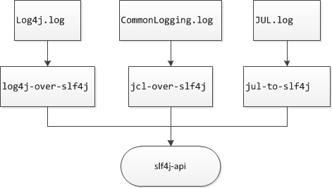 * log4j-over-slf4j--> slf4j-api--> logback-classic