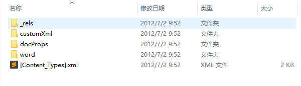 很简单:你随便选择一个docx文件,右键使用压缩工具打开,就能得到一个这样的目录结构: