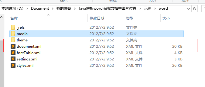 二是word目录下的media文件夹,看名字也能猜出来这个文件夹里面是文档中的多媒体内容: