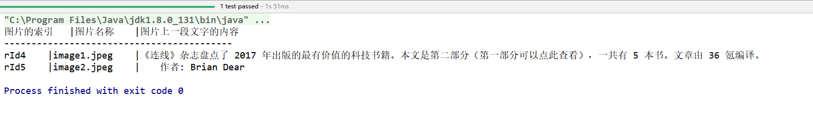 System.out.println("图片的索引\t|图片名称\t|图片上一段文字的内容\t");