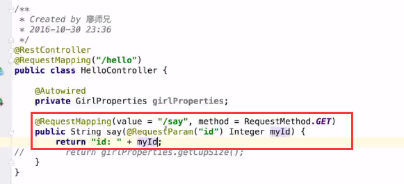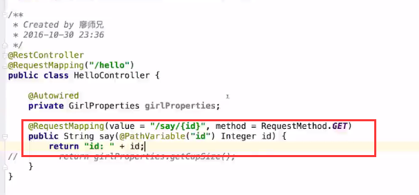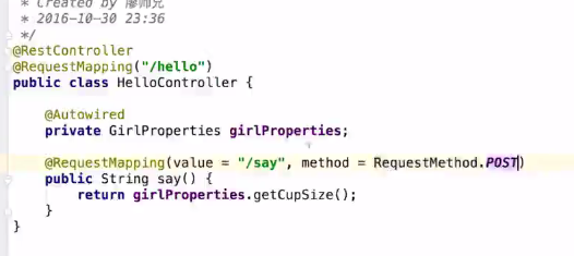 类上加上@RequestMapping其访问的地址就是类上的加上方法上的菜能访问到该方法,例如上图的地址就是/hello/say