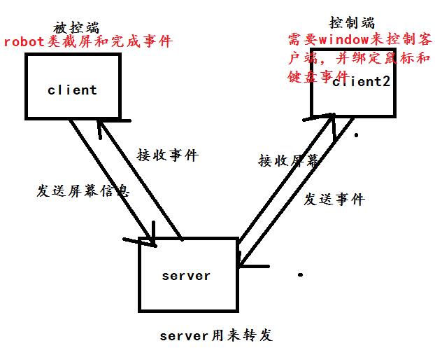 客户端拿到鼠标事件之后,通过robot类即可完成,并且截屏将图片发给服务器,服务器再发给控制端