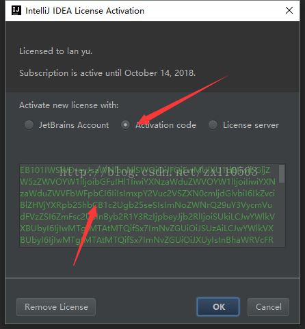 3、点击获得注册码,然后将注册码复制,粘贴到IDEA中
