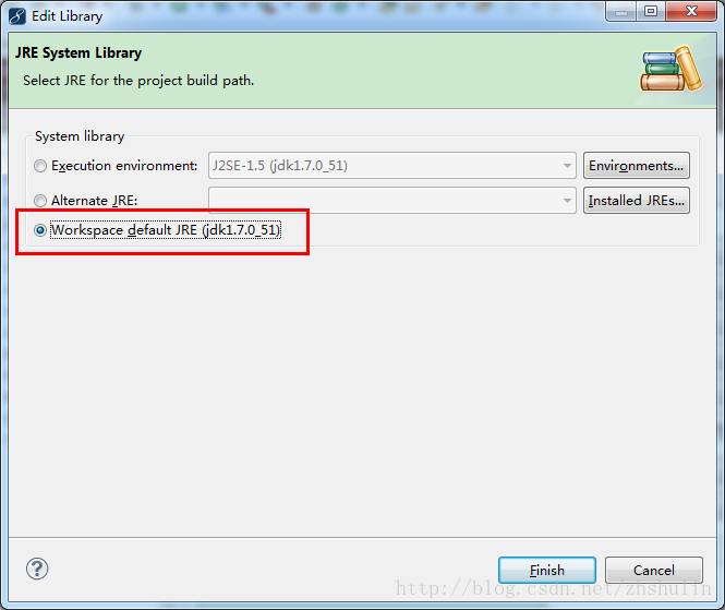 再次,按照以下图解来进行操作(设置JRE为默认的),这样就会出现完整的、正确的目录结构,至于什么原因,我不是很清楚,应该是个BUG:
