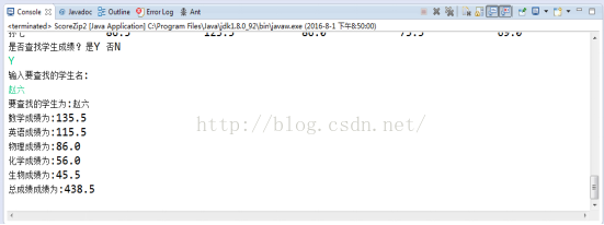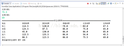 System.out.println("要查找的学生为:" + name + "\n数学成绩为:" + mg