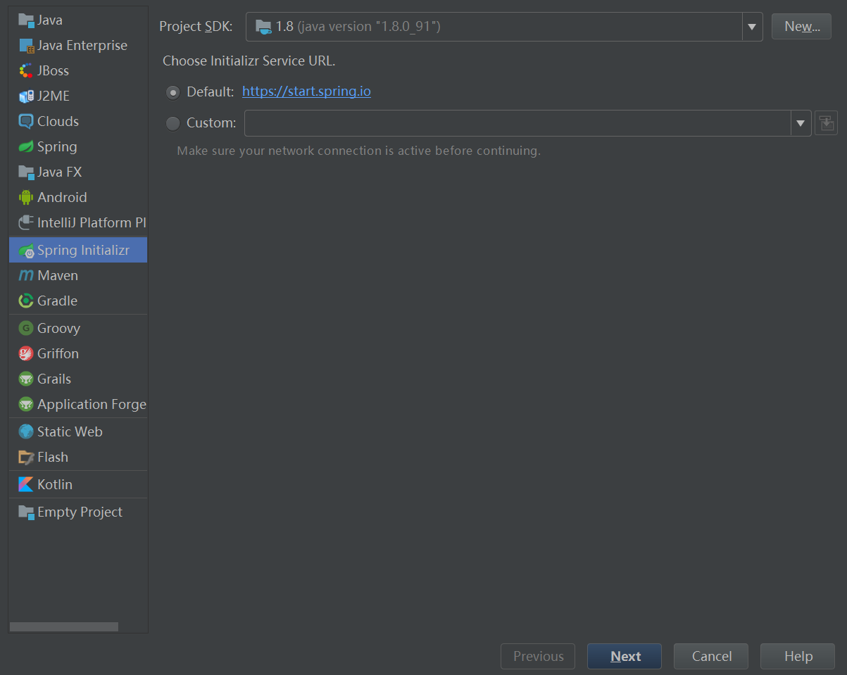 点击左边Spring Initializr ---》 右上角新建jdk(若有则不需要) ---》 点击next 如下图所示: