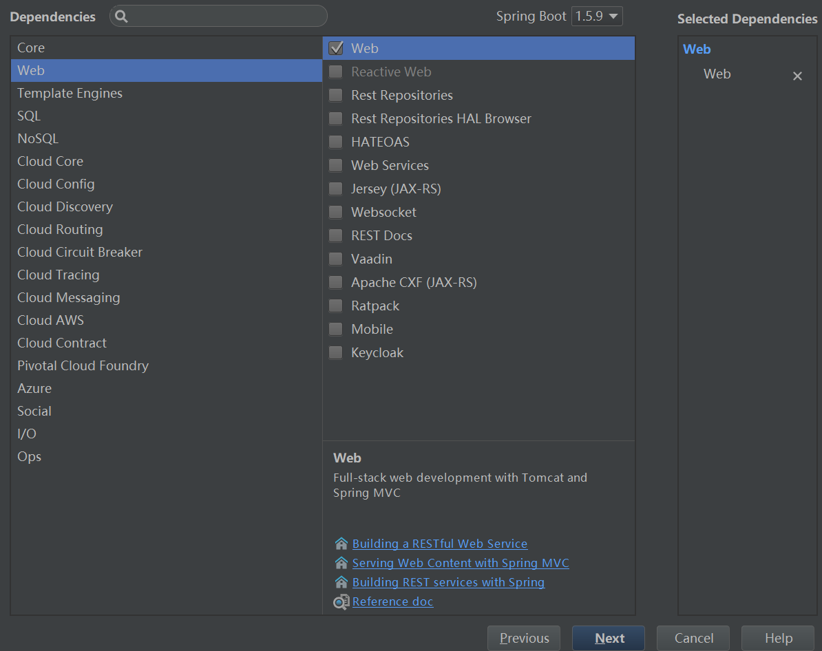 点击左边的Web ---》 选中中间列的Web ---》 点击next 如下图所示: