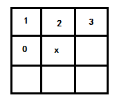 图像处理中的倒角距离变换(Chamfer Distance Transform)在对象匹配识别中经常用到,算法基本上是基于3x3的窗口来生成每个像素的距离值,分为两步完成距离变换,第一步从左上角开始,从左向右、从上到下移动窗口扫描每个像素,检测在中心像素x的周围0、1、2、3四个像素,保存最小距离与位置作为结果,图示如下: