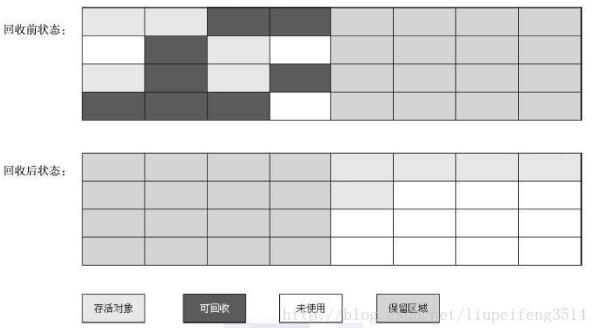因此人们提出另外一种“标记-整理”(Mark-Compact)算法由于老年代中的对象生存周期都较长,有人提出“标记-整理”算法,标记过程和“标记-清理”一样,但在清除已死对象的同时会对存活对象进行整理,这样可以减少碎片空间。