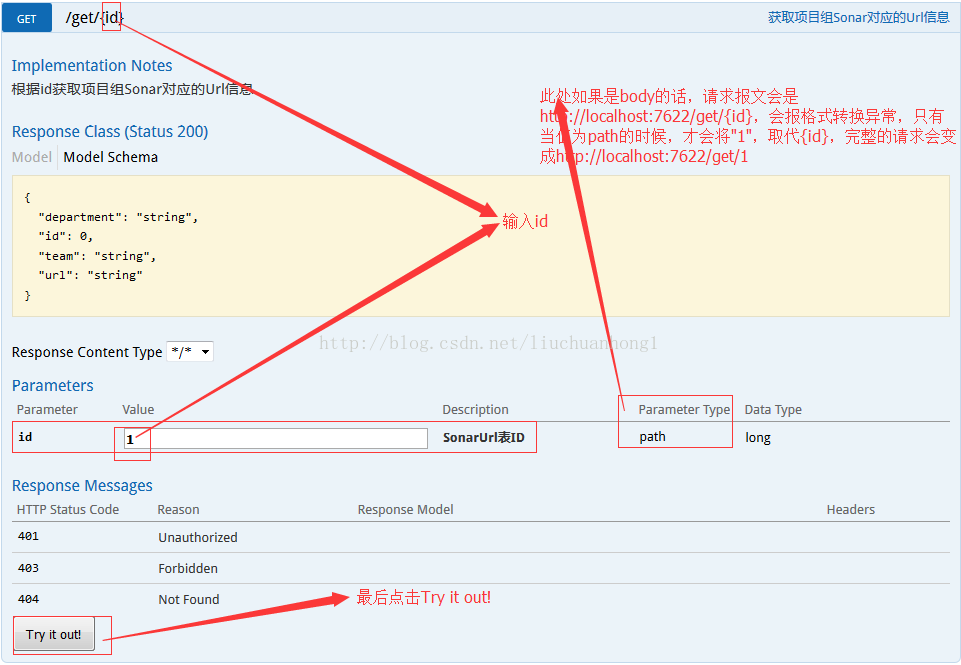 @ApiImplicitParam(name = "id", value = "SonarUrl表ID", required = true, dataType = "Long", paramType="path")