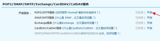 在账户选项卡中找到开启POP3/SMTP选项,如下: