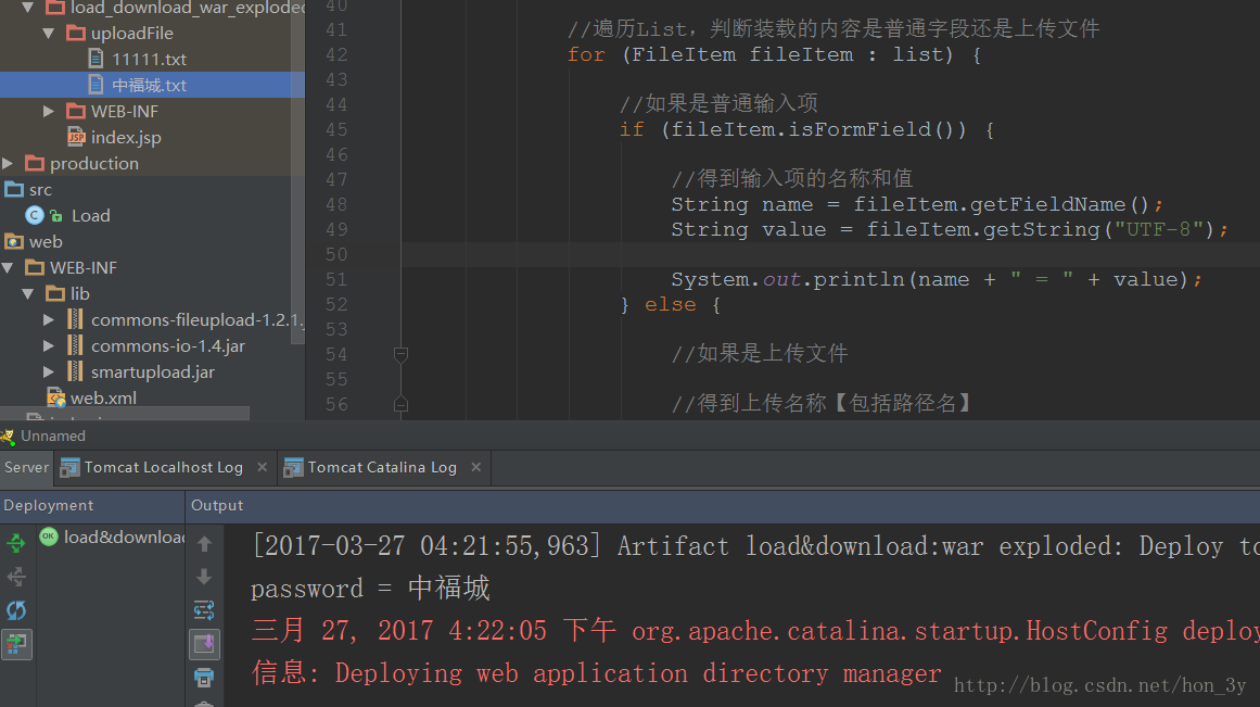 上传组件有两种 FileUpload【操作比较复杂】 SamrtUpload【操作比较简单】 FileUpload
