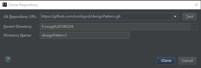 lq@DESKTOP-BHJ6UD2 MINGW64 /e/mygit/20180226 (master) $ git init Reinitialized existing Git repository in E:/mygit/20180226/.git/ lq@DESKTOP-BHJ6UD2 MINGW64 /e/mygit/20180226 (master) $ git clone https://github.com/noobgod/designPattern.git Cloning into 'designPattern'... remote: Counting objects: 73, done. remote: Total 73 (delta 0), reused 0 (delta 0), pack-reused 73 Unpacking objects: 100% (73/73), done.