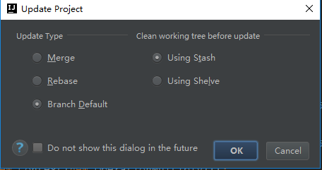 我们在提交代码前最好先更新下远程仓库的代码到本地仓库,这样可以减少不必要的冲突,更新update可以直接通过快捷键Ctrl + T也可以通过工具栏上按键来实现
