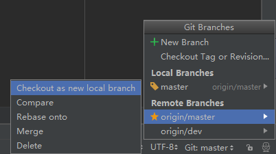 在这里我们可以切换分支,新建分支,checkout分支代码,compare分支代码等等。