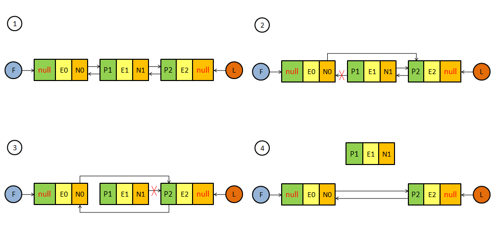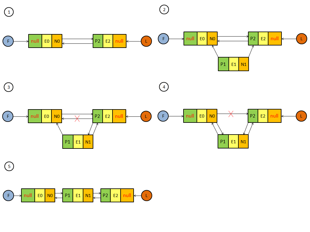 linkBefore和unlink是具有代表性的链接结点和卸载结点的操作,其他的链接和卸载两端结点的方法与此类似,所以我们重点介绍linkBefore和unlink方法。