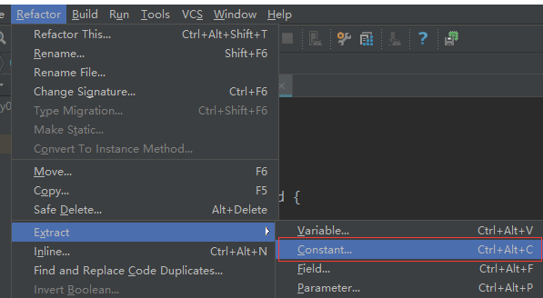 抽取静态变量的快捷键 Ctrl + Alt + C。